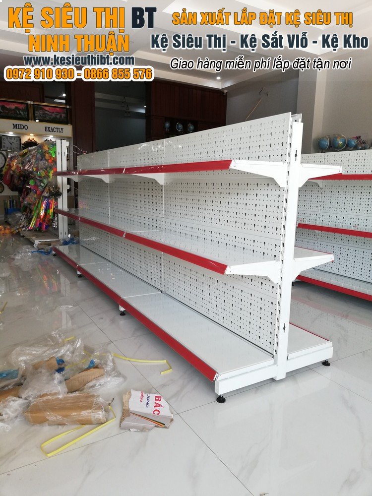 Kệ trưng bày tạp hóa tại Ninh Sơn Ninh Thuận ngày càng có nhiều doanh nhân muốn mở siêu thị, cửa hàng tạp hóa để buôn bán cùng với yêu cầu tối ưu diện tích trưng bày hàng hóa, đã kéo theo nhu cầu sử dụng giá kệ để hàng hóa tăng cao. Thấu hiểu được nhu cầu đó của khách hàng, Kệ siêu thị Bình Thuận đã ra đời với mục tiêu sản xuất và phân phối các mặt hàng giá kệ siêu thị chất lượng cao.