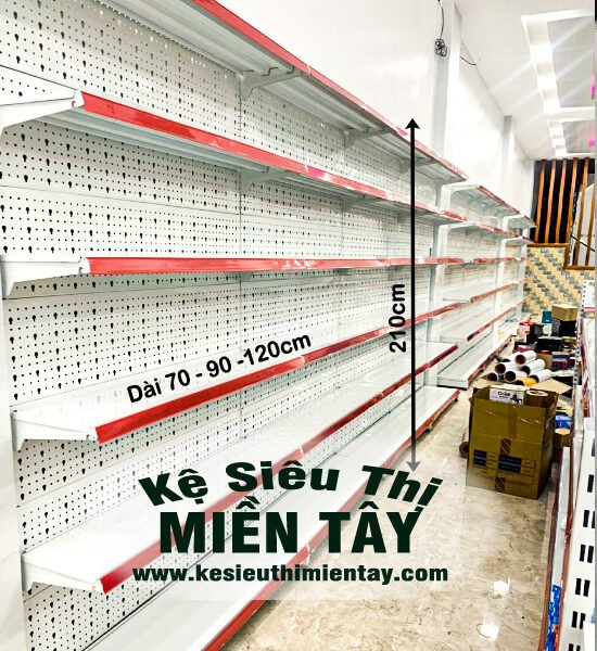 - Kệ siêu thị tôn lỗ có phần lưng là tôn có các lỗ.