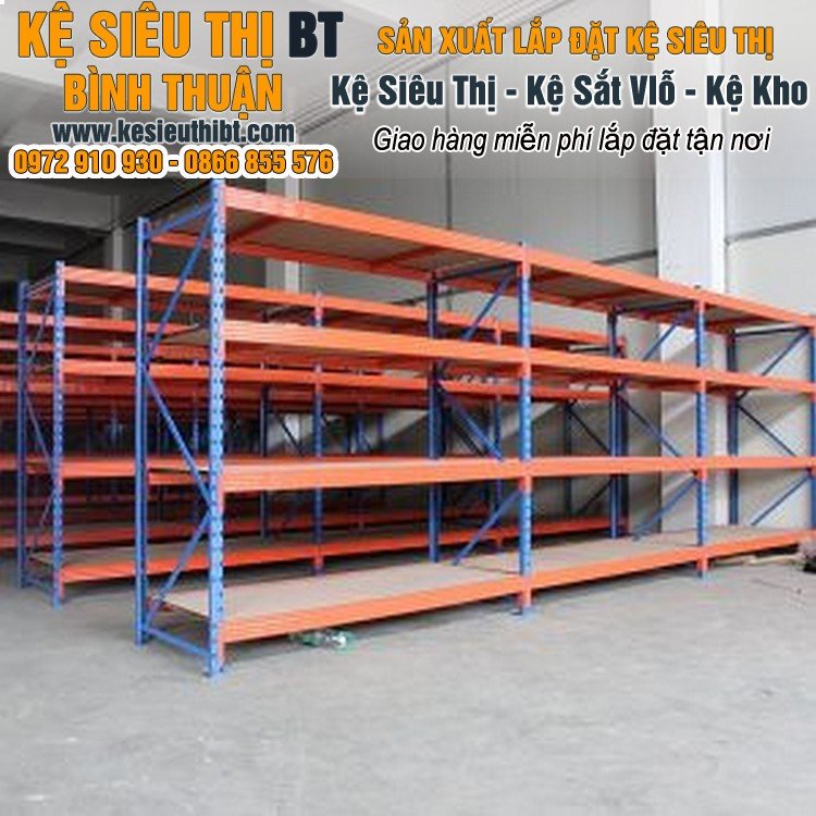 Kệ siêu thị Bình Thuận là đơn vị sản xuất và phân phối Cung cấp tất cả các loại giá kệ & thiết bị cho kho hàng, siêu thị. Chúng tôi có tất cả các loại kệ kho hàng, kệ siêu thị đáp ứng mọi nhu cầu khách hàng như kệ trung tải, kệ selective, kệ đơn, kệ đôi, kệ trưng bày, kệ quảng cáo, kệ tôn đột lỗ, kệ tôn liền, kệ giỏ mì, kệ kho…