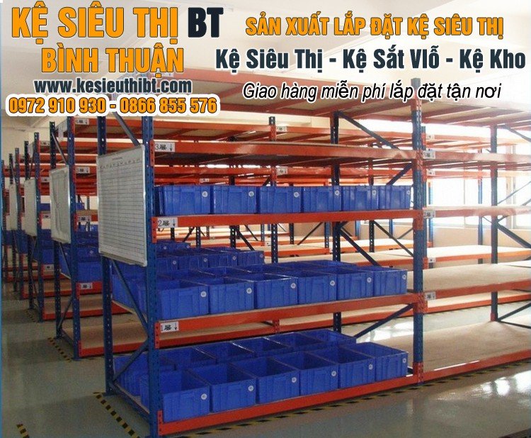 Kệ siêu thị Bình Thuận là đơn vị sản xuất và phân phối Cung cấp tất cả các loại giá kệ & thiết bị cho kho hàng, siêu thị. Chúng tôi có tất cả các loại kệ kho hàng, kệ siêu thị đáp ứng mọi nhu cầu khách hàng như kệ trung tải, kệ selective, kệ đơn, kệ đôi, kệ trưng bày, kệ quảng cáo, kệ tôn đột lỗ, kệ tôn liền, kệ giỏ mì, kệ kho…